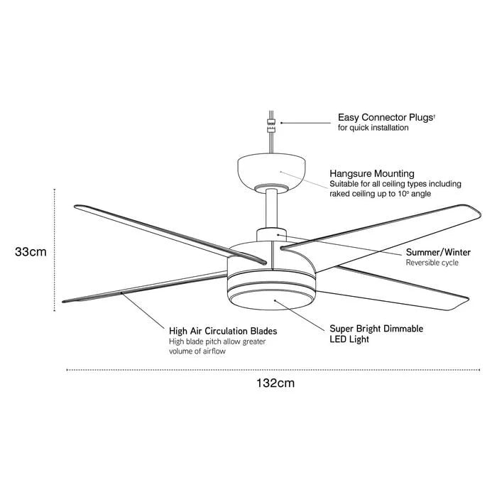 - 132cm (52inch) 4 blade sweep