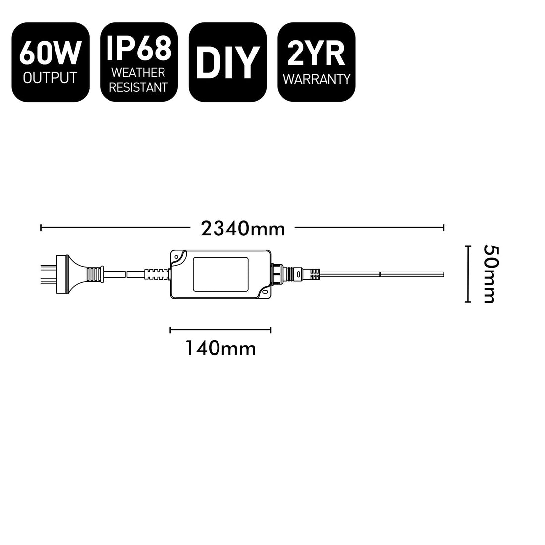 12V Transformer with 240V 2.0m lead with plug. Ideal for use with low-power LED garden lighting. Suitable for indoor and outdoor use, for all types of gardens, ponds and entertainment areas. No electrician is needed.