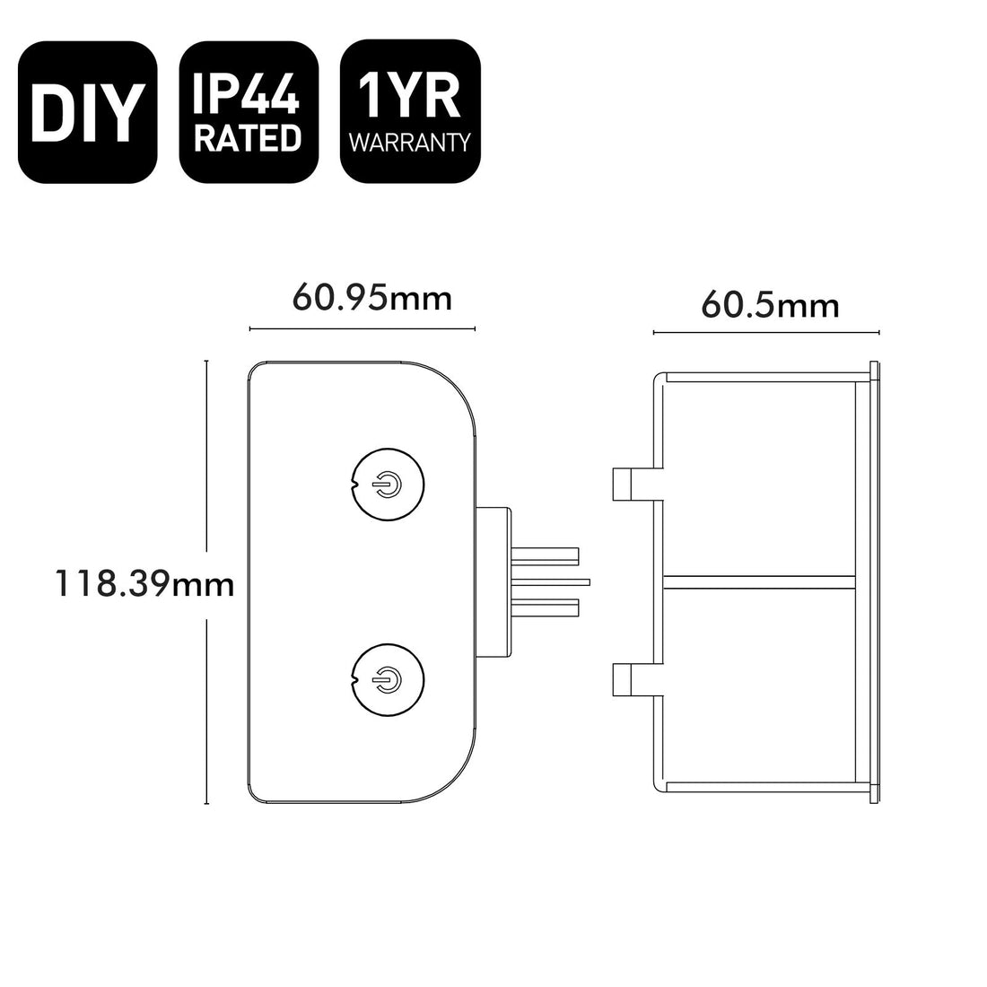 Plug into any 220V-240V AC 50Hz weather-resistant power outlet to control the connected devices manually or through the BrilliantSmart app.