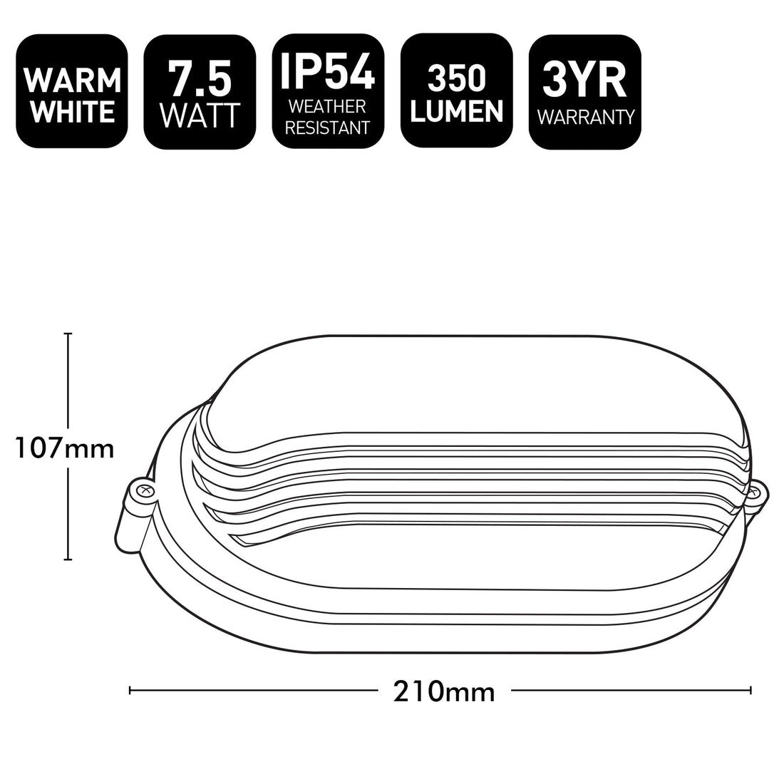 The Brilliant Black Essex Louvred LED Oval Bunker Light combines modern style with durability, offering energy-efficient, weather-resistant illumination for indoor and outdoor spaces.