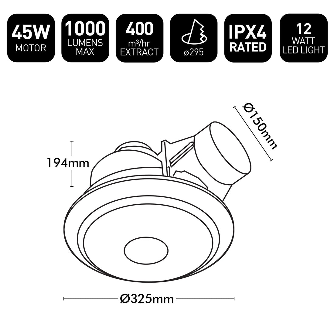 Brilliant White Boreal-II 45W Round Exhaust Fan with Light