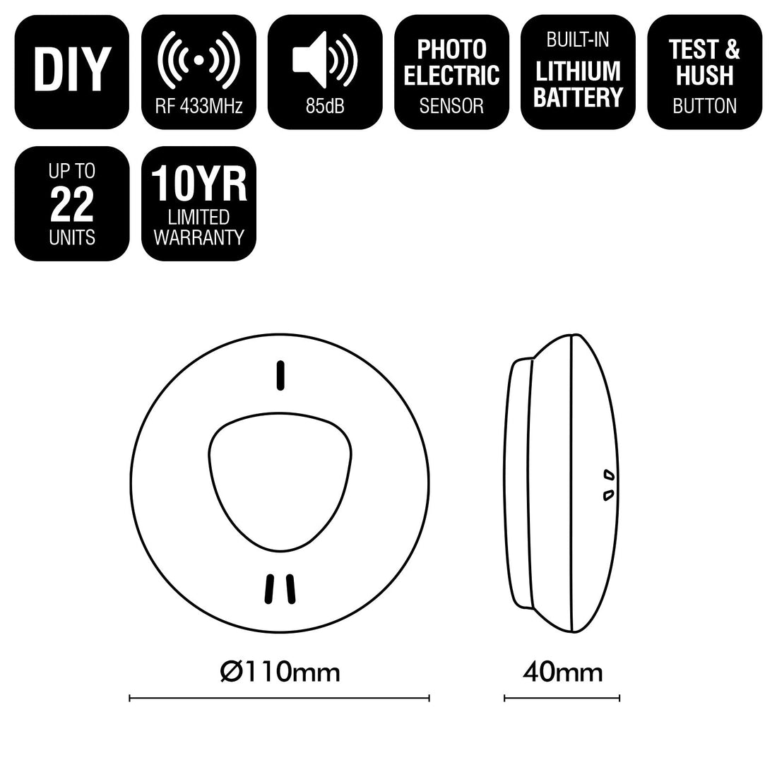 The Brilliant Interconnected Smoke Alarm is a 10-year Lithium battery-powered smoke alarm with an in-built wireless RF connectivity.