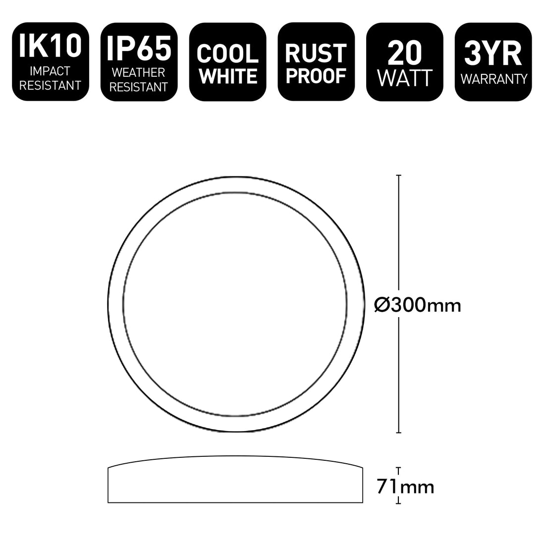 Brilliant White Kensley 20W Impact Poly LED Bunker Light
