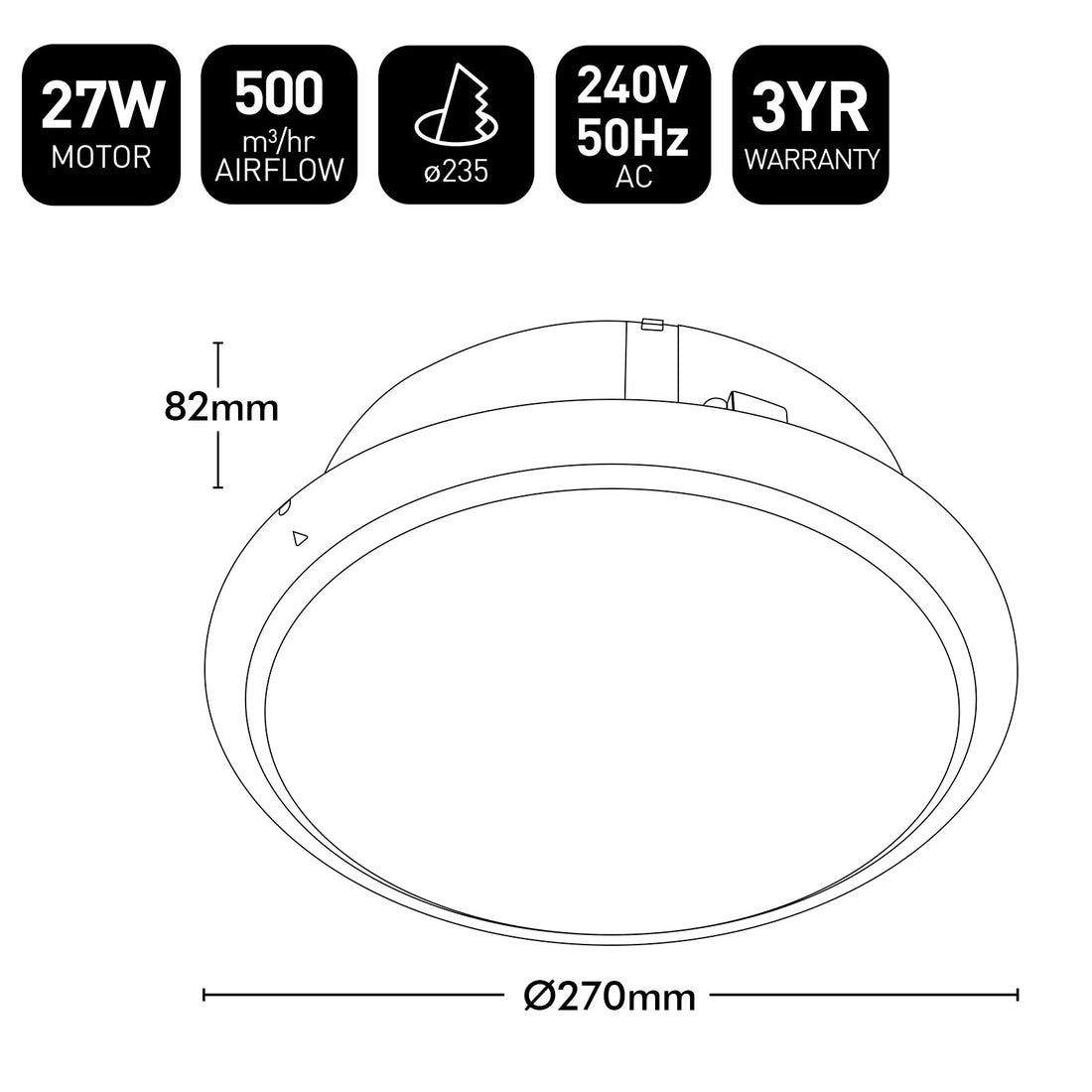 Brilliant White Whisper High-Velocity ø270mm Exhaust Fan