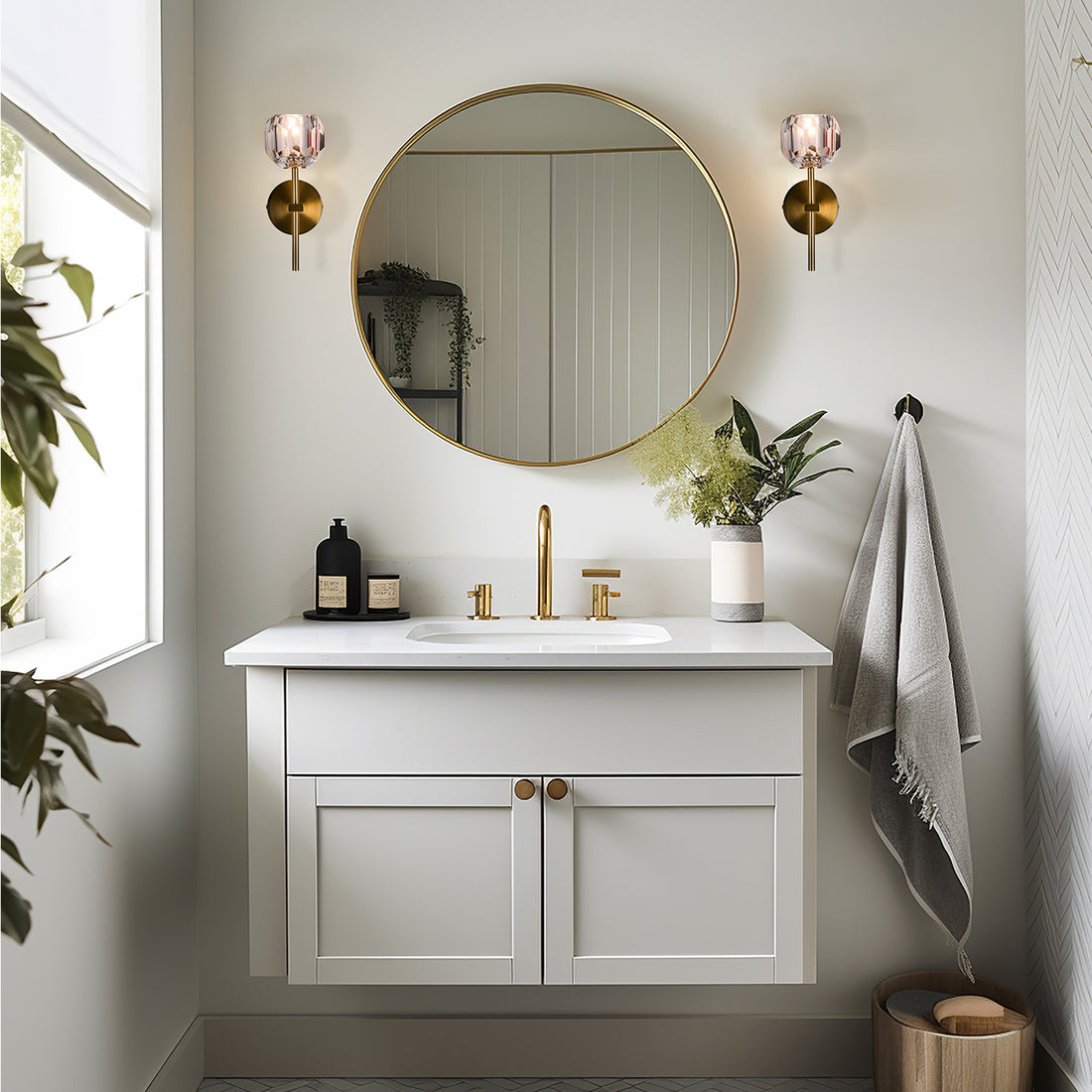 Elevate elegance with Celeste 27.5cm Cut Glass & Satin Brass Vanity Light. The intricate cut glass design paired with satin brass finish adds sophistication to your vanity space. Effortlessly upgrade with this stylish and efficient light, offering a perfect blend of aesthetics and practical brilliance.