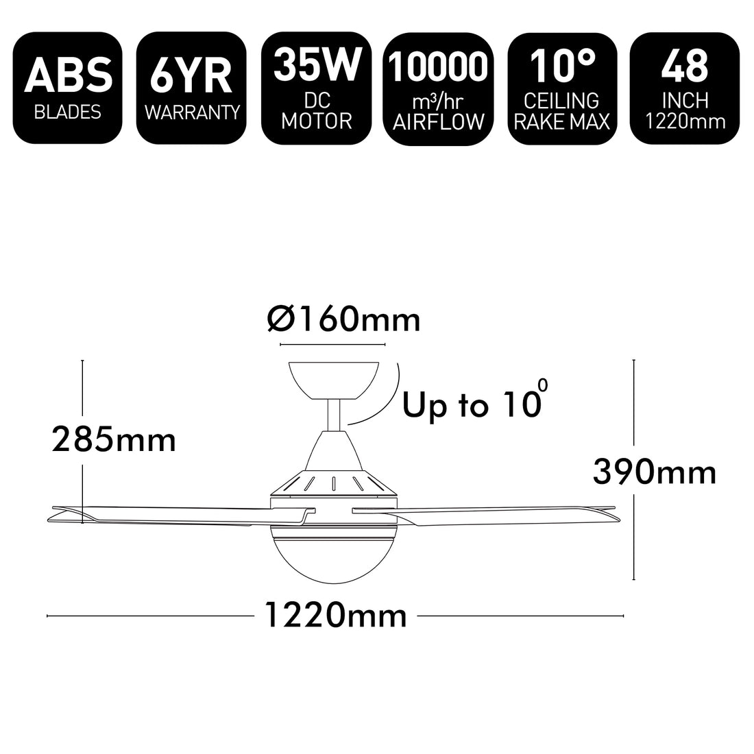 Brilliant Matt Black Cairns 48" DC Ceiling Fan with Light