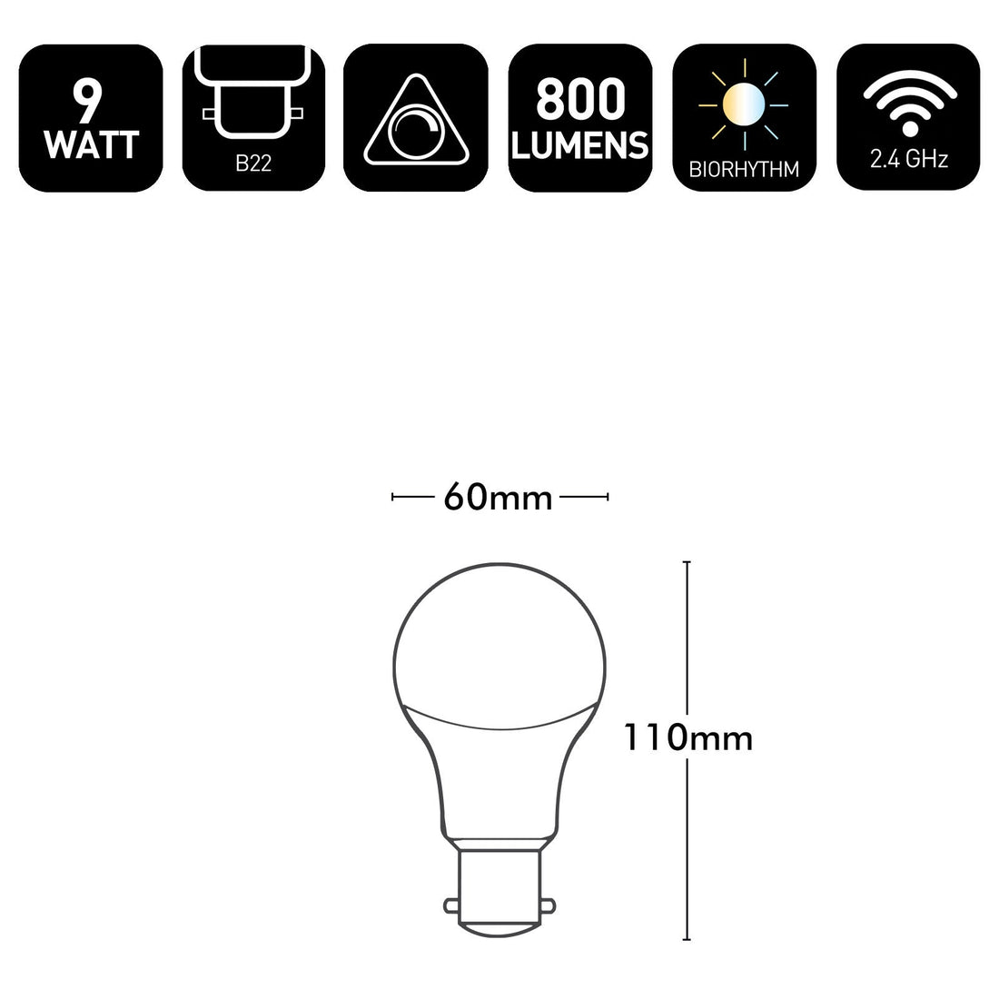 Brilliant Smart Wi-Fi A60 RGB+W LED Biorhythm B22 Globe