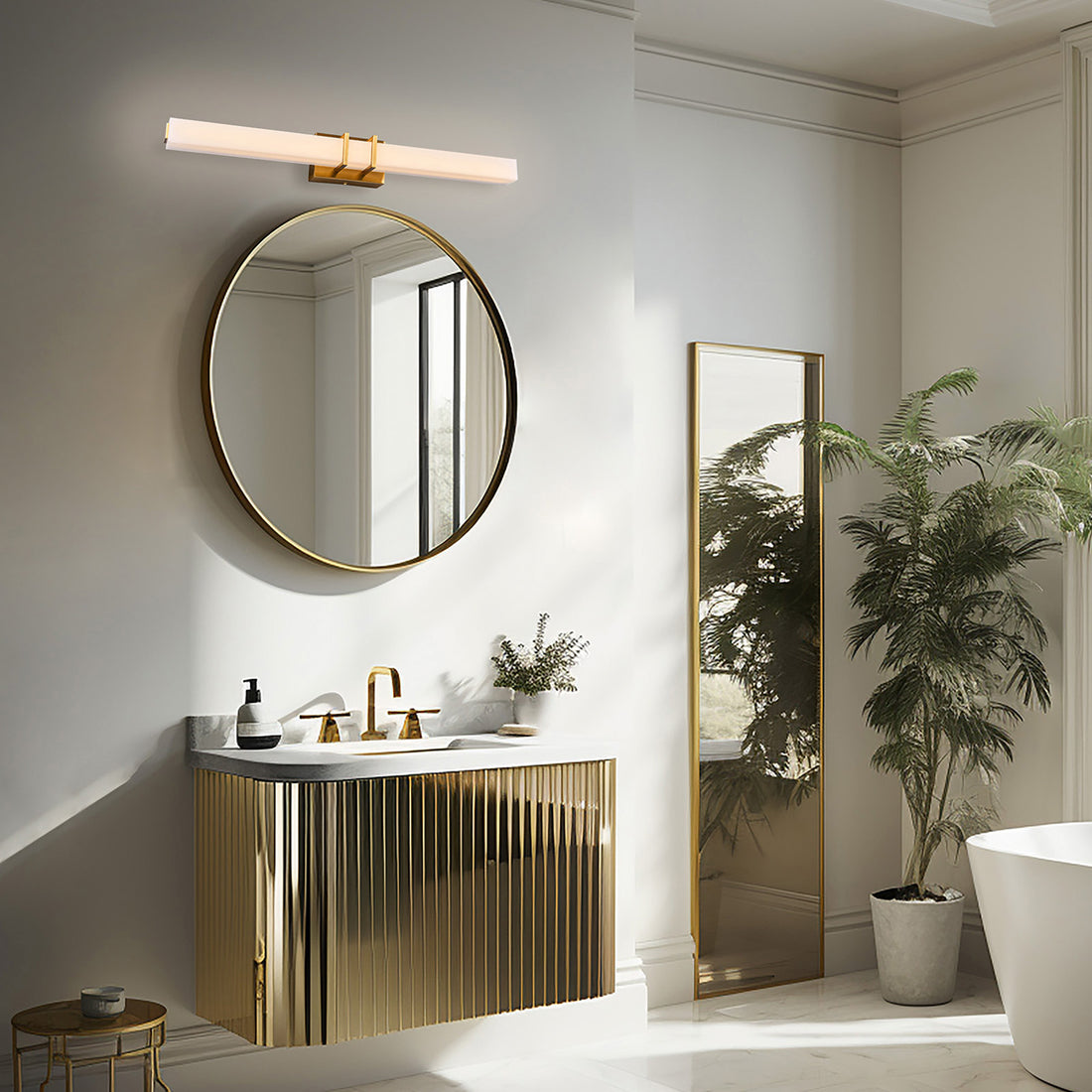 Illuminate with Soho 62cm Brass Vanity Light! Modern design meets functionality. The brass finish adds a touch of sophistication, emitting a soft, ambient glow that enhances any vanity space. Effortlessly upgrade with this stylish and efficient LED light, offering a perfect fusion of contemporary aesthetics and practical brilliance.