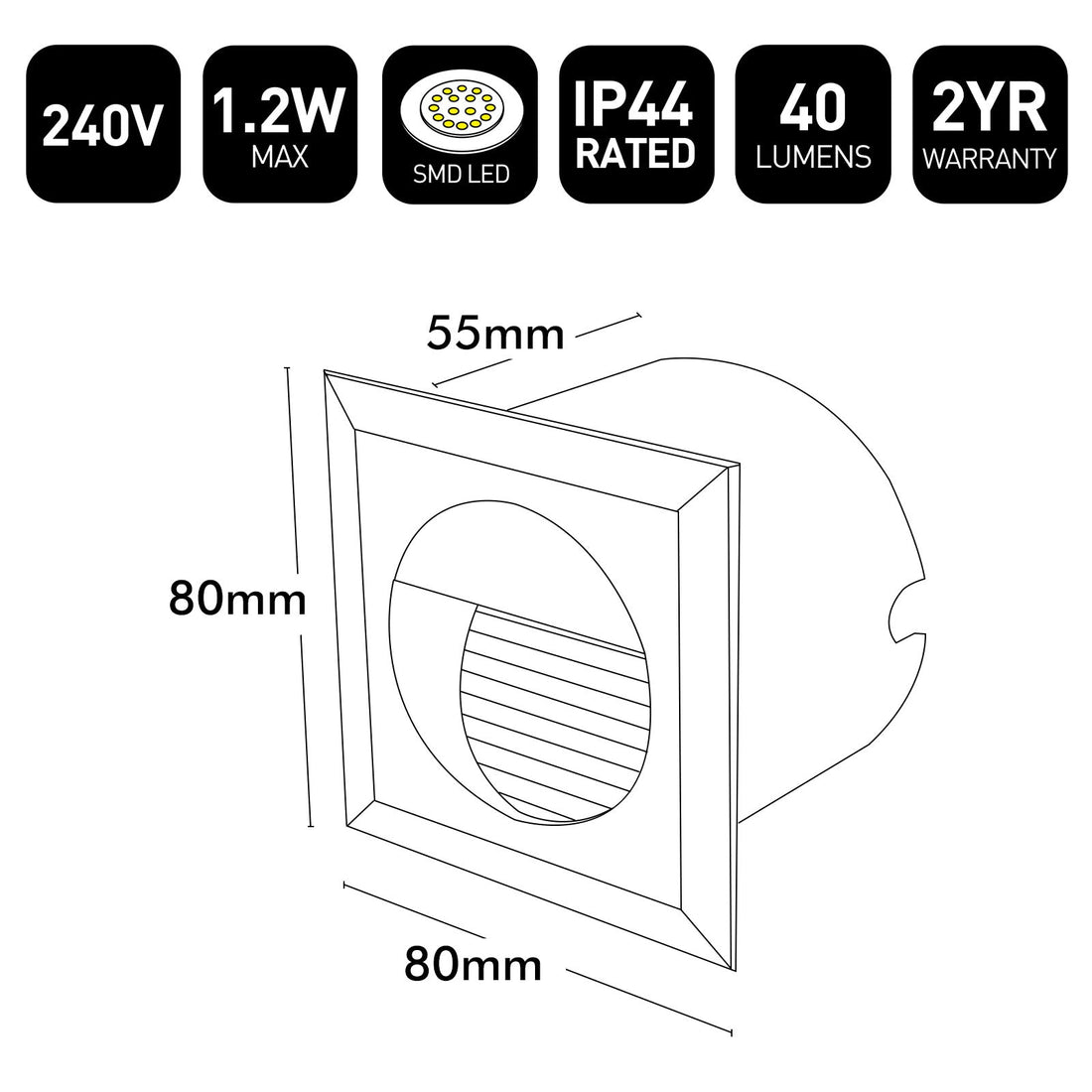 The Brilliant White Lachlan LED Square Step Light features a sleek, square design with integrated LED technology, providing energy-efficient and durable lighting for steps and outdoor pathways.