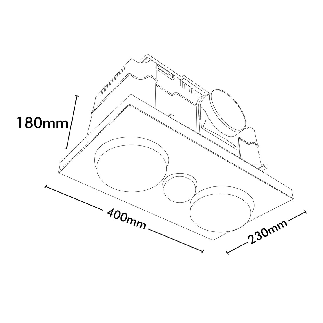 - Combines heating, lighting, and ventilation for a complete bathroom solution