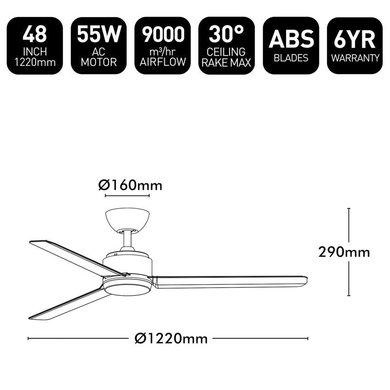 Brilliant White Solana 48" AC ABS Ceiling Fan